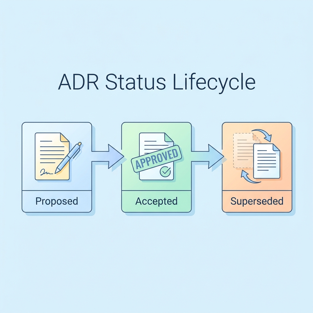 Statusは「この判断、いまどういう扱い?」を一発で分かるようにするやつ💡 例:Proposed / Accepted / Superseded / Deprecated / Rejected みたいな感じ✨ (Embedded Artistry)