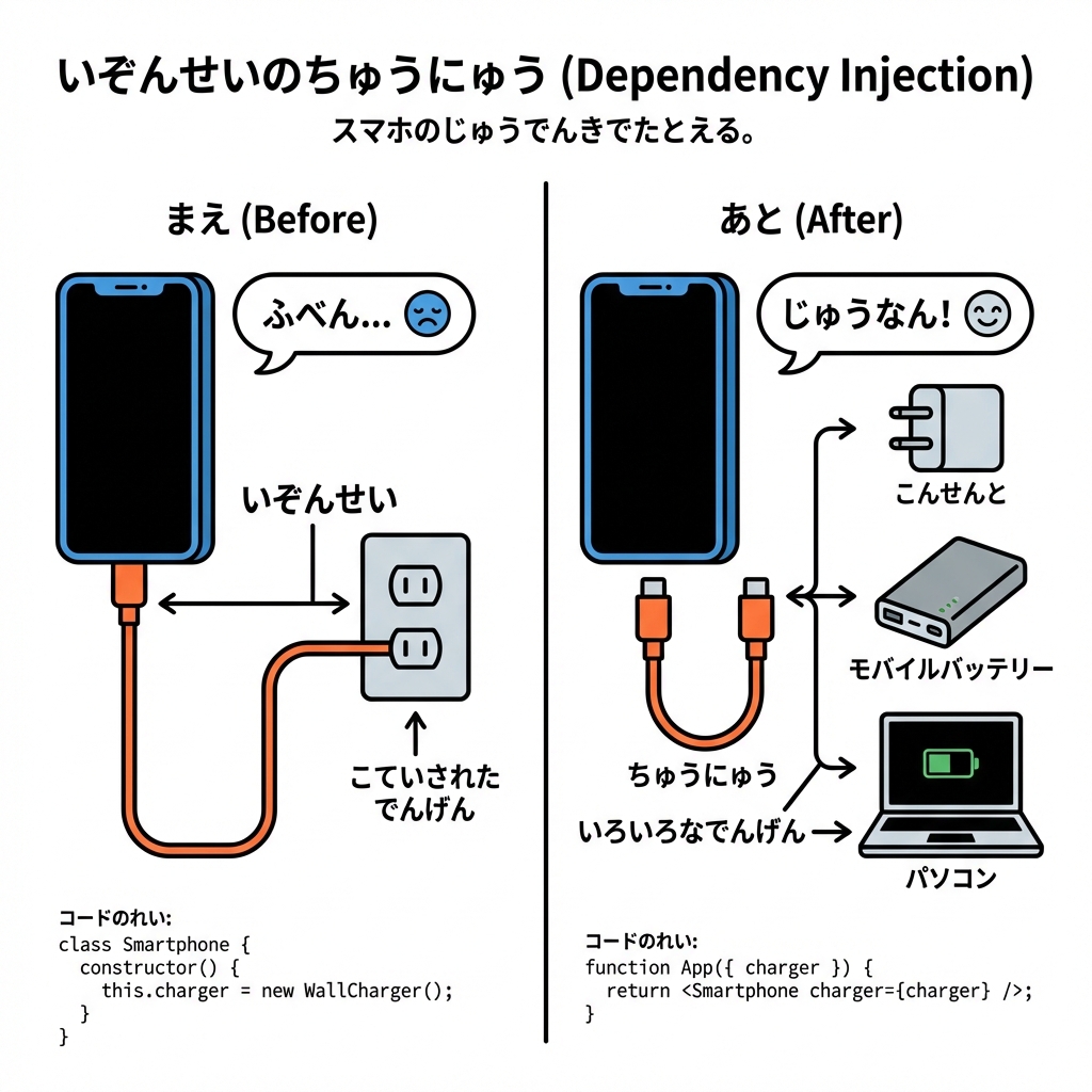 「必要なもの(依存)を、外から渡してもらう」 それだけ!💉