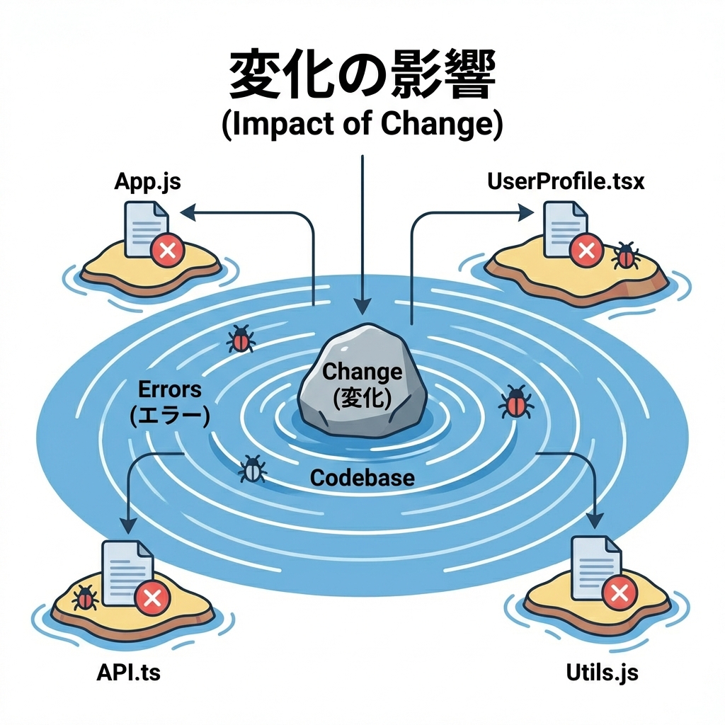 importした瞬間に 依存の矢印➡️ が生える- 矢印が増えると「変更の波🌊」が広がりやすい