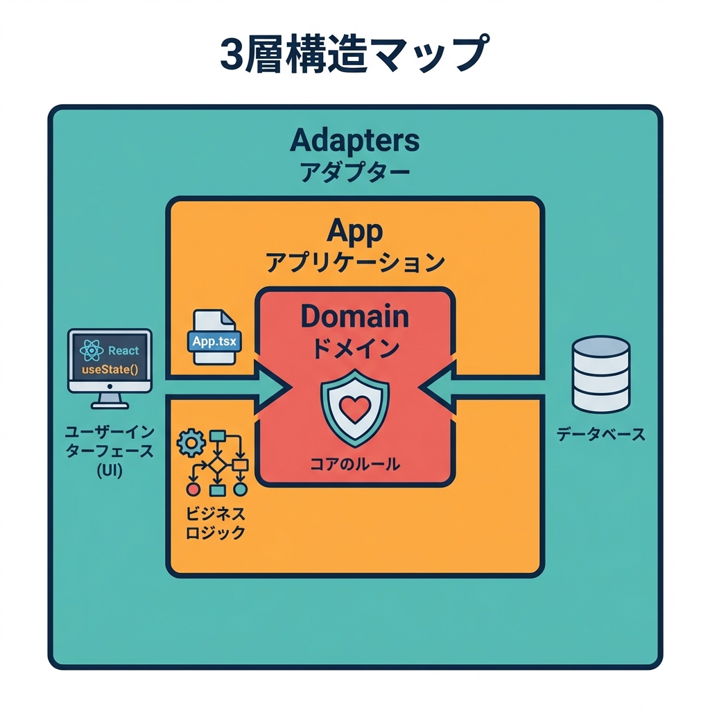 • domain / app / adapters境界フォルダを作った📁🧱