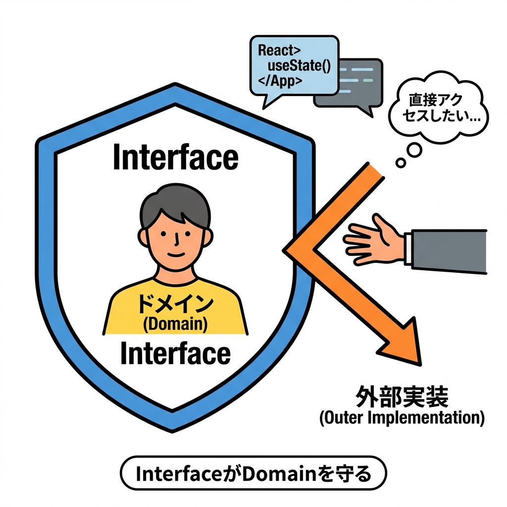 こういう “欲しい能力” を interface/type で定義しておくと、 Domain は外側に支配されない💪✨