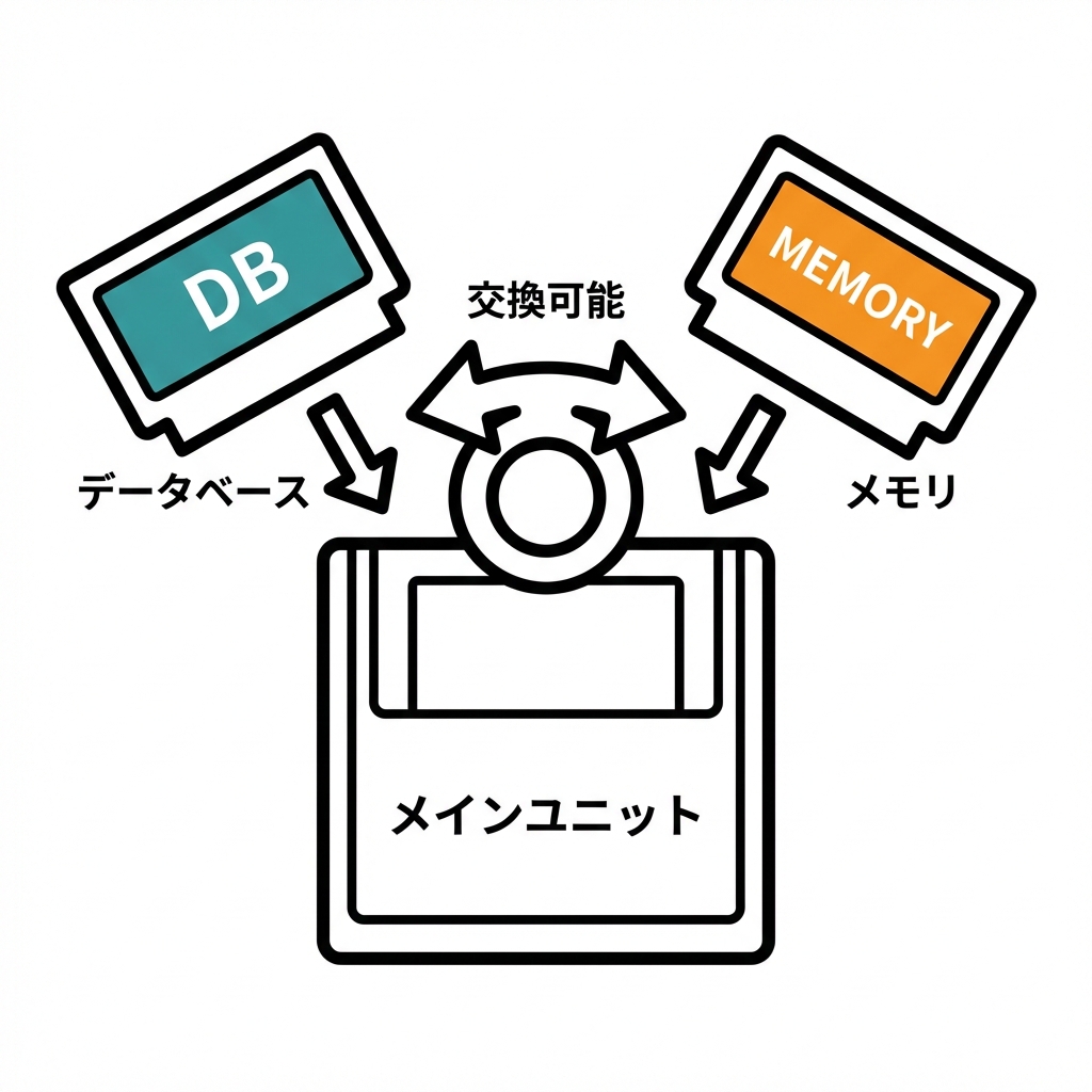 • 外側:DB版やインメモリ版を 契約に従って実装 する🧰