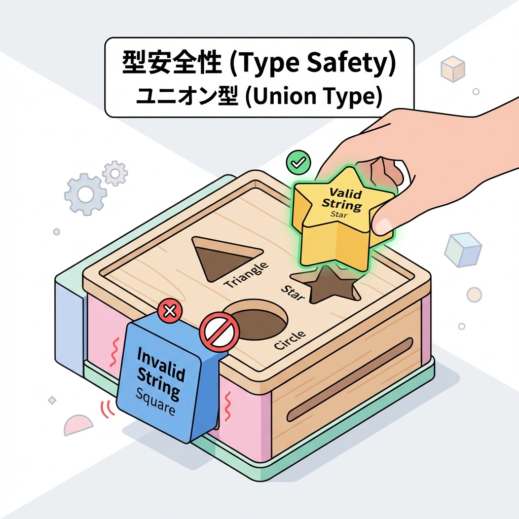 • 使える値を ユニオン型 で縛って、タイポをコンパイルで止められる🛡️✨