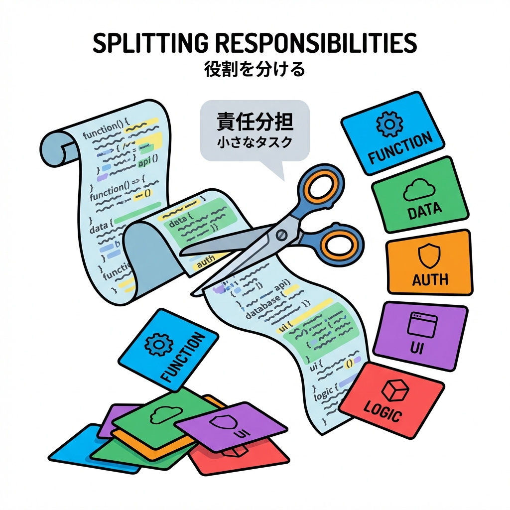 - 「検証✅」「計算🧮」「保存💾」みたいに、役割ごとに切り分けられる