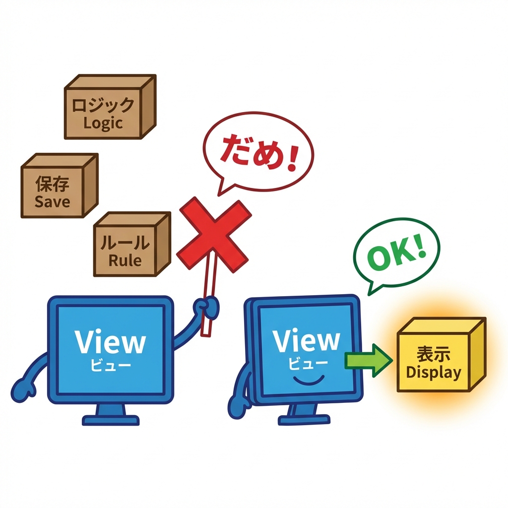 - Viewにロジック(ルール・保存・判断)を混ぜない🚫🧠