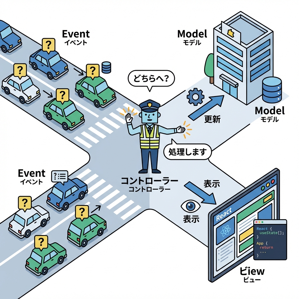 - イベント(入力) → Controllerが受け取る🎮