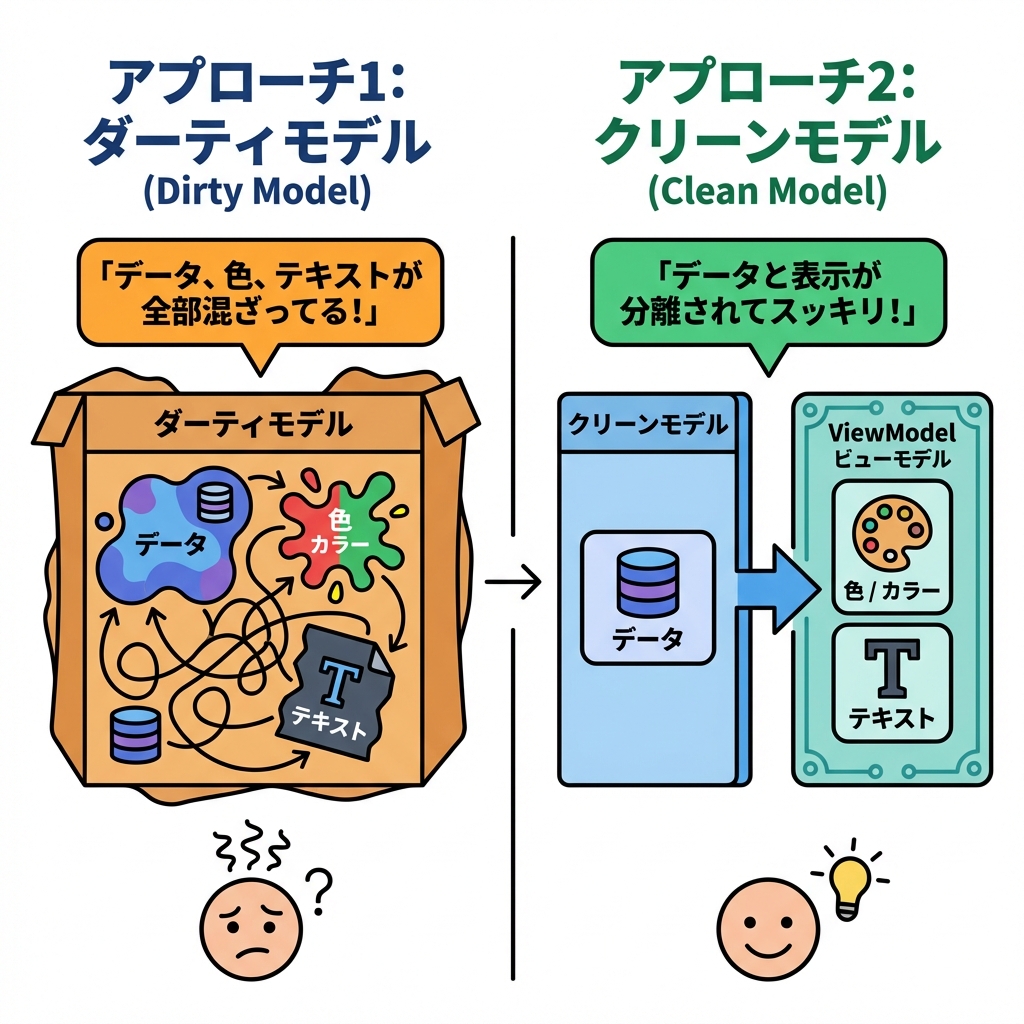 👉 Modelは「事実」だけ。UI都合の装飾は別レイヤ に逃がす!🏃‍♀️💨