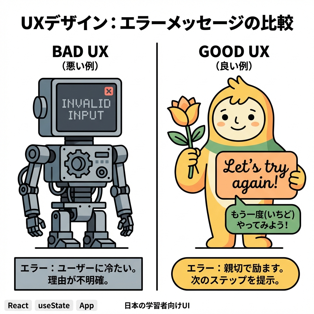 - “やさしい日本語”でエラーメッセージを出せる(怖くない・責めない・次が分かる)🌷💬