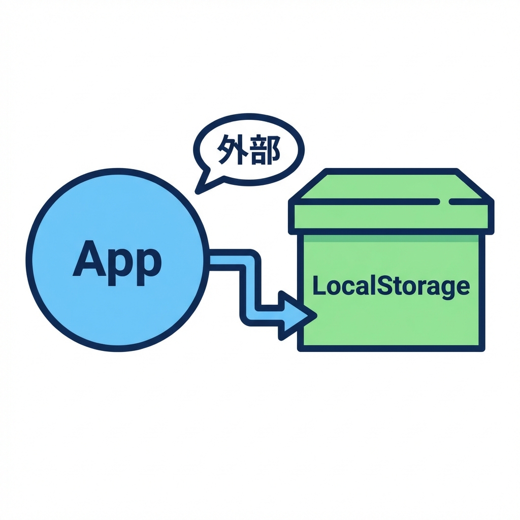 • 永続化:アプリの外(今回は localStorage)💾✨