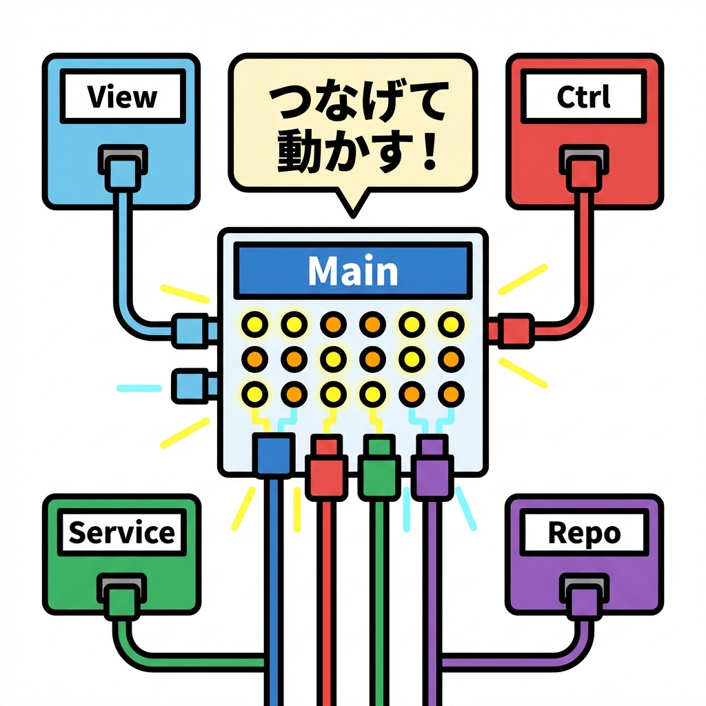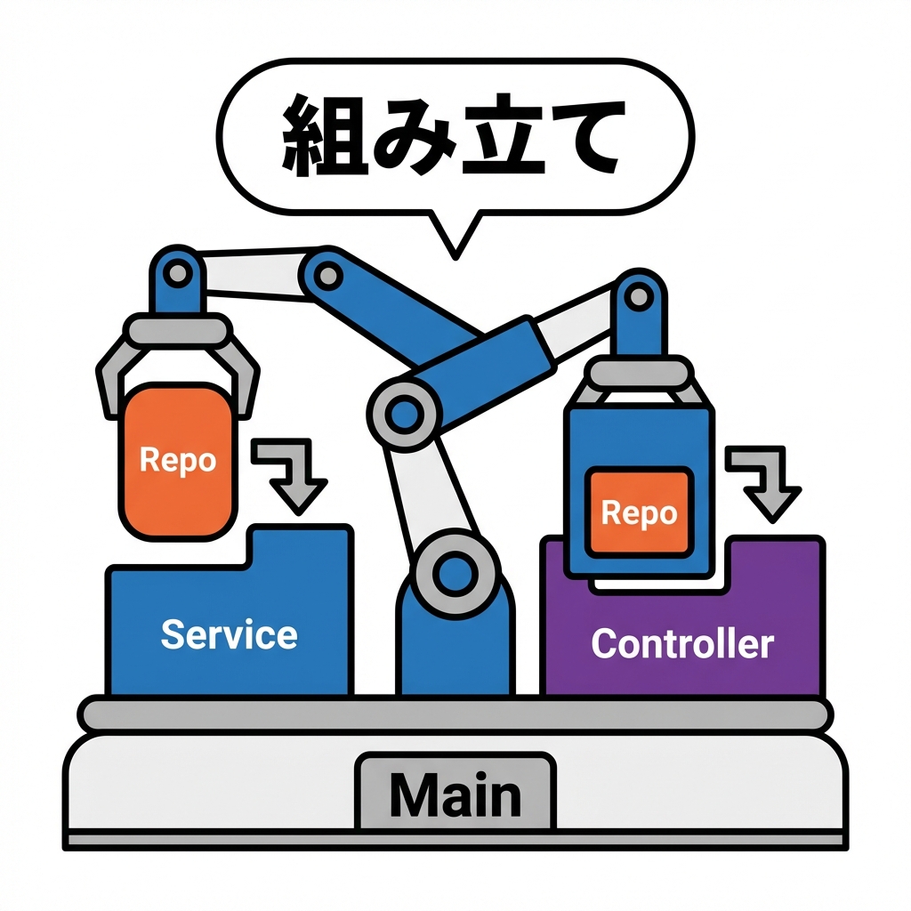 👉 まずは今回の「手動DI(組み立てをmainに集約)」が最強に学びやすいよ🧠✨